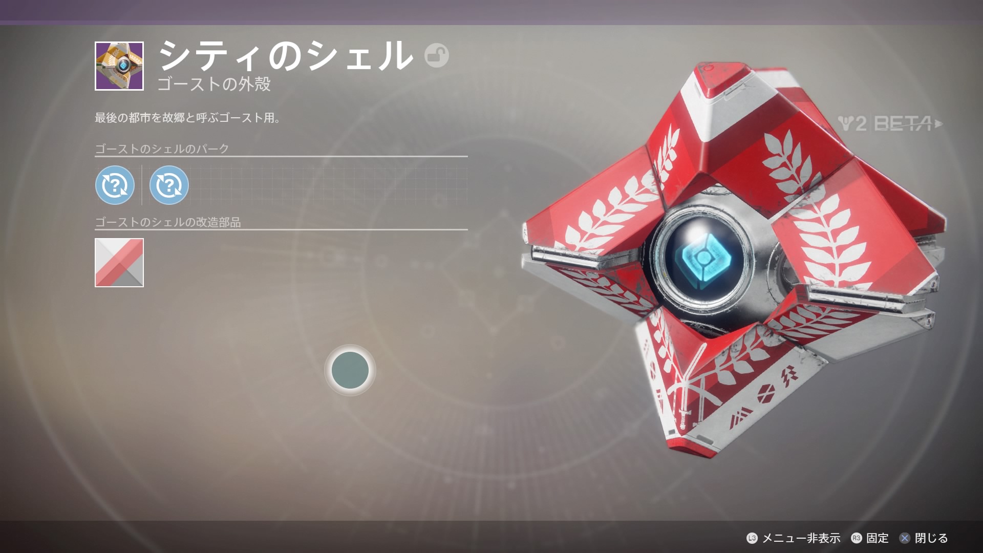 | ■ | ![]() | シティのシェル | 最後の都市を故郷と呼ぶゴースト用 | β初期装備 |
