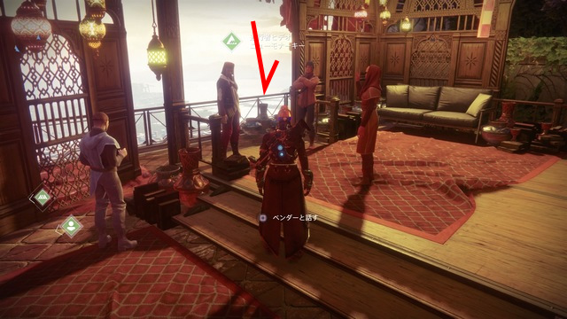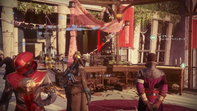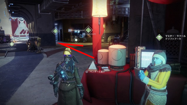 バンガード研究者の印7枚を寄付して評価を上げることで、バンガード系装備(初期防具のレジェンダリー版)が手に入る。少ない数で交換が可能だが、週間での入手数が限定されており入手数も少なめ。 瞑想の受注はここ。瞑想は週刊アクティビティで毎週1キャラ3つまでストーリーをリプレイできる。 イコラ・レイの挑戦の報告先もここ。