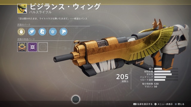 | パルスライフル | - | 530 | エキゾチック | キネティック | プライマリ |