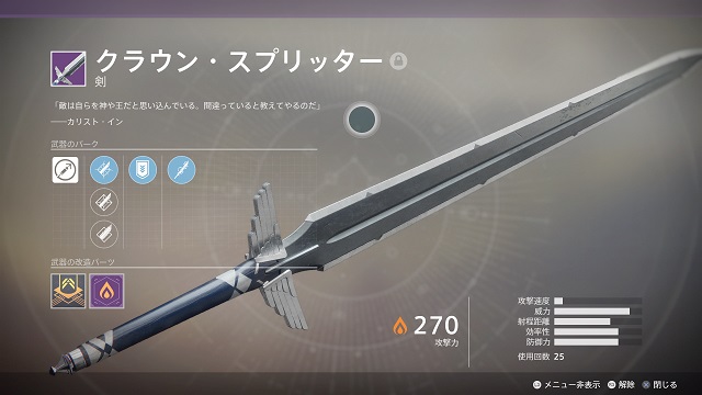 タイタンでストーリーミッションをクリアした場合にケイド6から入手できるレジェンダリー剣。
