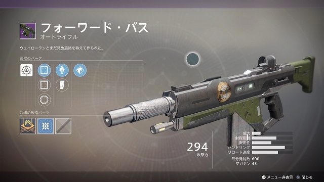 | プライマリ | オートライフル | スカウトライフル | ハンドキャノン | パルスライフル | ピストル | サブマシンガン | 弓 |