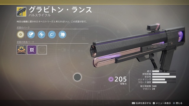 | パルスライフル | - | 257 | エキゾチック | ボイド | プライマリ |