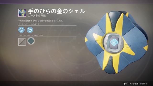 | ■ | 最後の都市のシェル(損傷) | 最後の都市を故郷と呼ぶゴースト用。 | イベントで入手 | |
