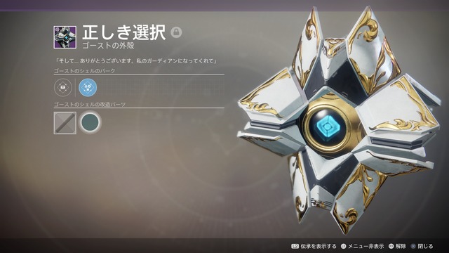 | ■ | ハンターのシェル | ハンターのパートナーであることを誇りに思っているゴースト用。 | ||