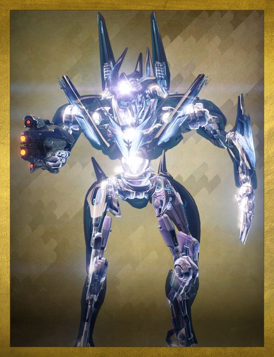 3つの角を持つ特徴的な頭部と、結晶体のように透き通った外装を持ち、眼とレディオラリア核は非常に眩く輝いている。