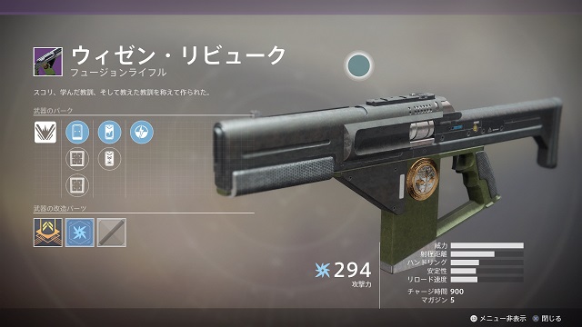 | ピストル:アライド・デマンド | AR:ダーク・ディサイダー | パルス:ジョルムの鉤爪 | スカウト:ガイディング・サイト |