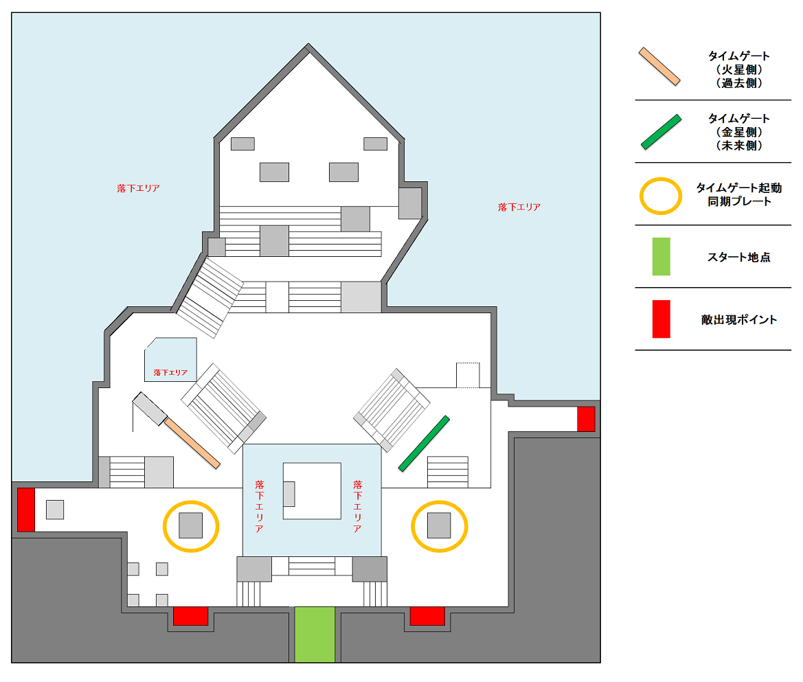 ※:タイムゲート先にある空間は、風景こそ違うが配置関係は初期エリアとほとんど同じである。