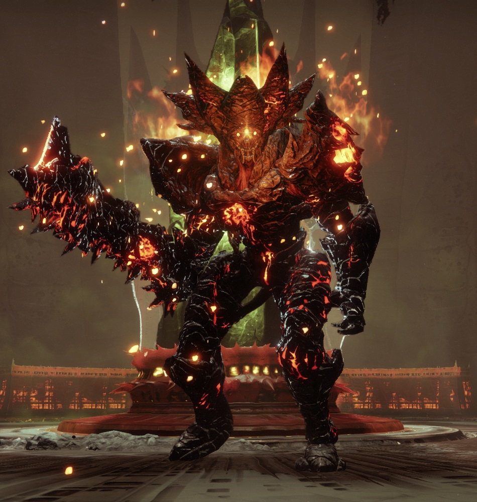 真紅の砦の地下深くに広がる穴、その中心にある「破滅の揺り篭」においてナイトメアの力を吸収していた、炎に包まれ全身が赤熱したハイヴ・ナイト。