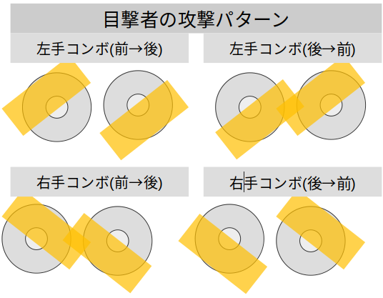 (DPS中を除き)目撃者の手は左右それぞれ3種ずつ現れる。